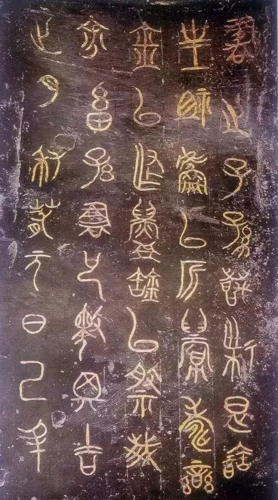传二十年代山西浑源出土,曾为一代名家罗振玉收藏。匕前端圆,柄首残断。通体有错金铭文,正反两面共残存三十六字。