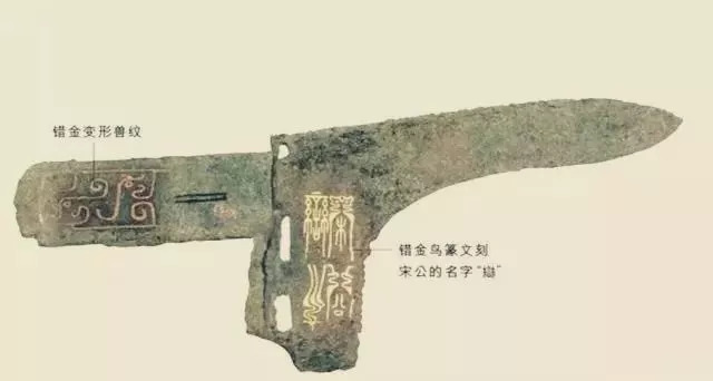 春秋时期兵器,全长22.3厘米,一九三六年安徽省寿县出土。此戈有铭文,为错金鸟篆体。