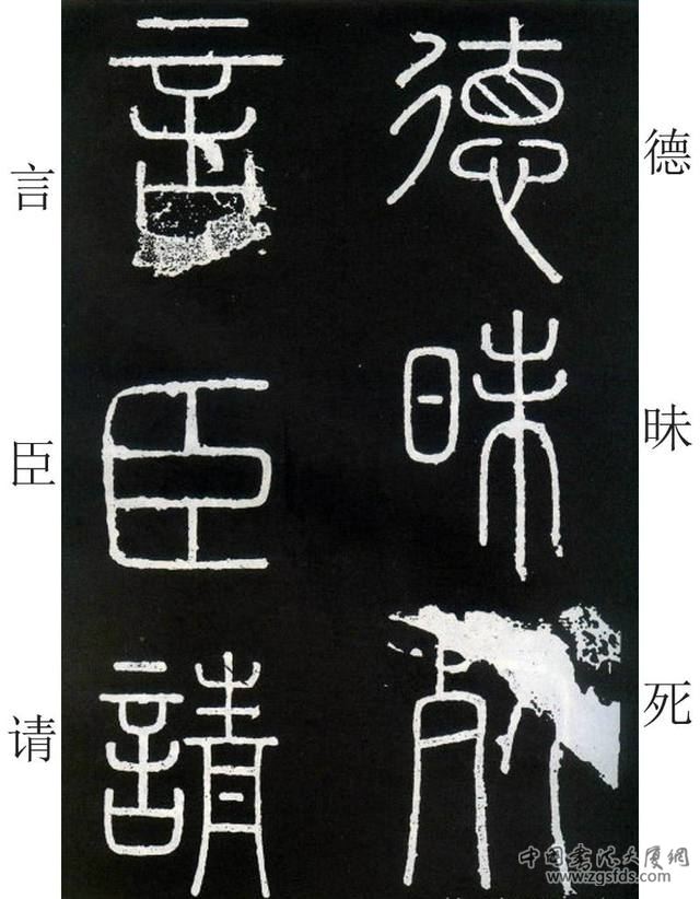 峄山刻石 秦始皇二十八年(前 219)李斯书 高218厘米,宽84厘米。又称元摹峄山秦篆碑。原立于邹县城县衙大堂,民国初年移入孟庙致敬门内,1973年移入启圣殿内保存,现存于邹城市博物馆。