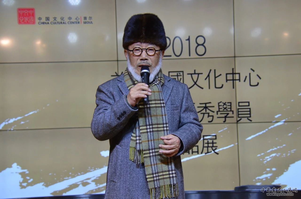 韩国著名书法家、国际书法艺术联合会韩国本部理事长、北京大学书法艺术研究所客座教授权昌伦随后致辞。他对展览开幕表示热烈祝贺,对首尔中国文化中心成立14年来积极推动书法艺术传播与发展给予高度评价,称赞此次展览将是进一步弘扬作为东方文化根基的书法艺术,密切中韩书法交流的重要契机。