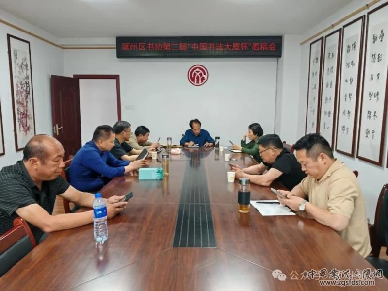 阜阳市颍州区书法家协会5月11日,颍州区书法家协会在颍州区文艺创作中心成功举办第二届"中国书法大厦杯"书法大奖赛专题看稿会暨投稿工作部署会,协会主席团及秘书处成员代表参会。会议旨在贯彻落实党的二十大精神,推动区域书法事业高质量发展,全面提升颍州区在中国书法大厦杯赛事中的投稿质量与竞争力。