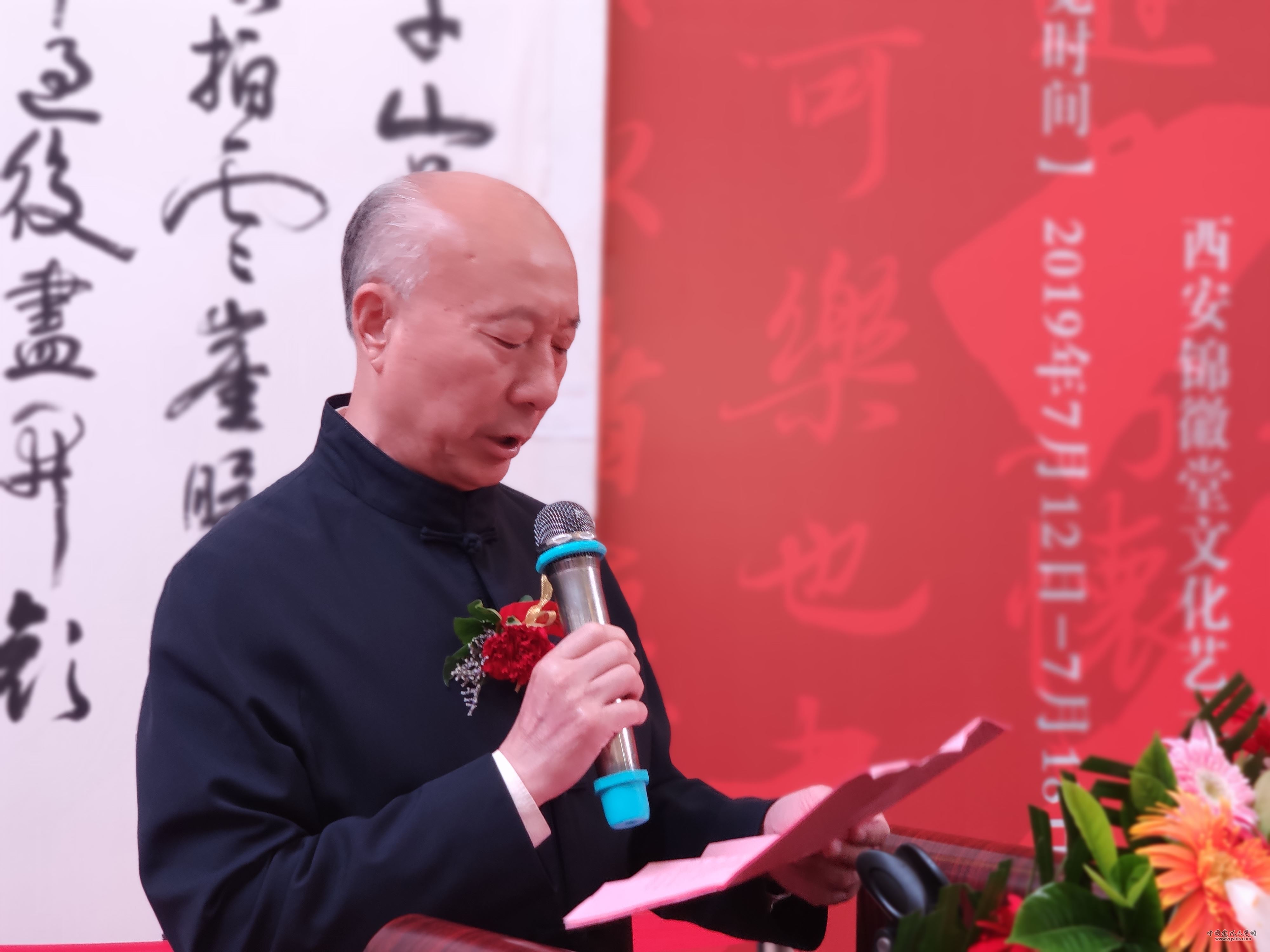 陕西书学院院长、省书协副主席张瑞琦致欢迎词,他说:“本次中国书法大厦组织的高规格展览不仅给我们陕西书界提供了难得的观摩学习机会,也让古城广大群众切身感受了中华传统高雅艺术的魅力。在建设“一带一路”的大背景下,我们要‘同心、同德、同登攀’,始终不忘总书记对广大文艺工作者的嘱托:承担起培根铸魂的神圣职责。不忘初心,牢记使命,以手中笔墨抒写壮阔伟大的新时代,书写新中国70年来党和人民的奋斗实践,抒写中国力量、中国精神、中国价值和中国精彩”。