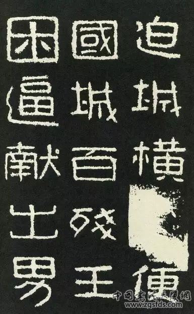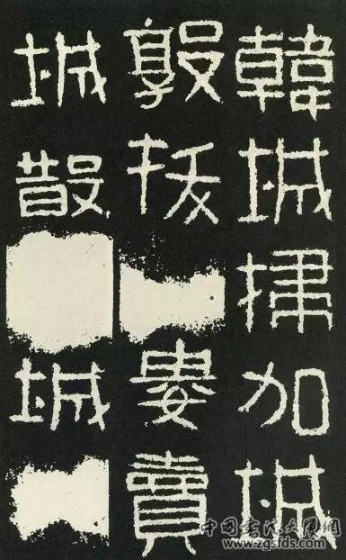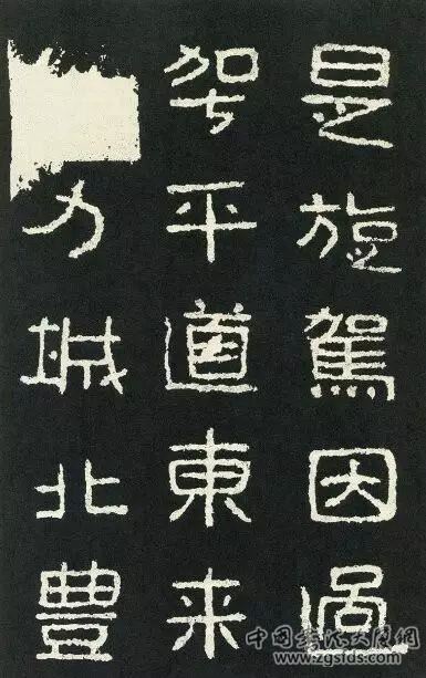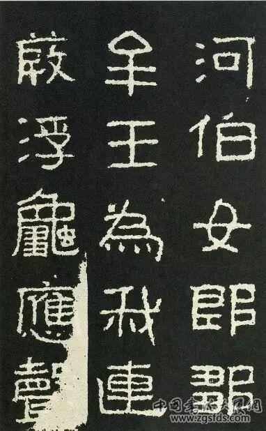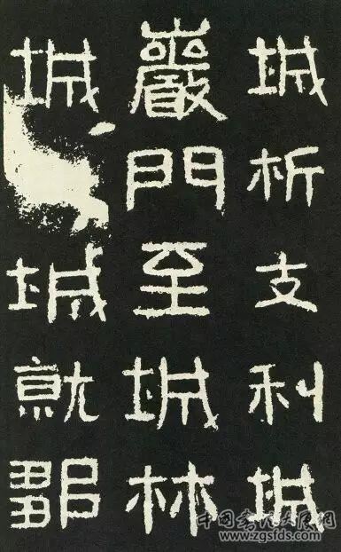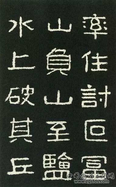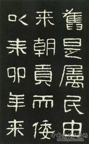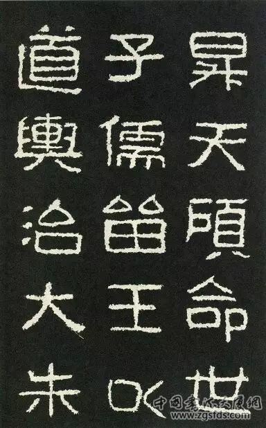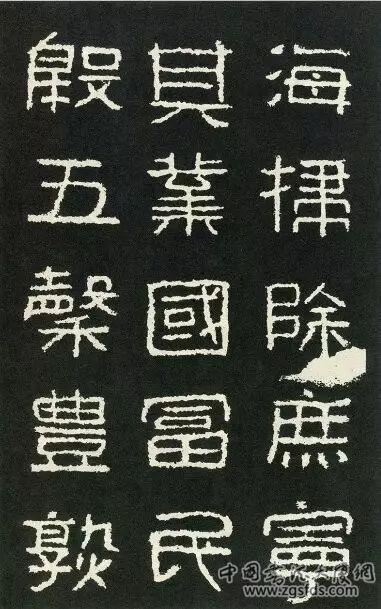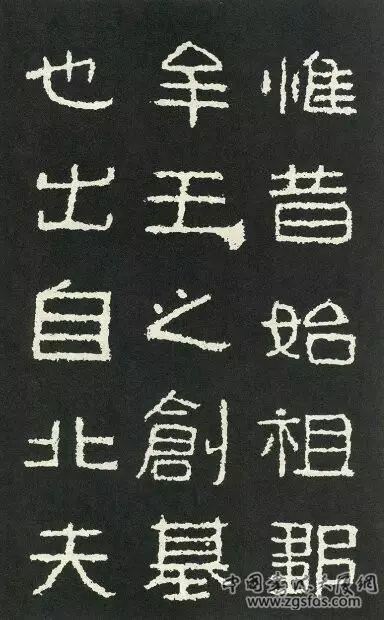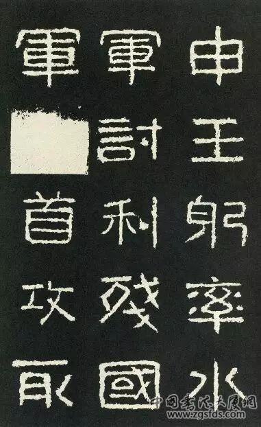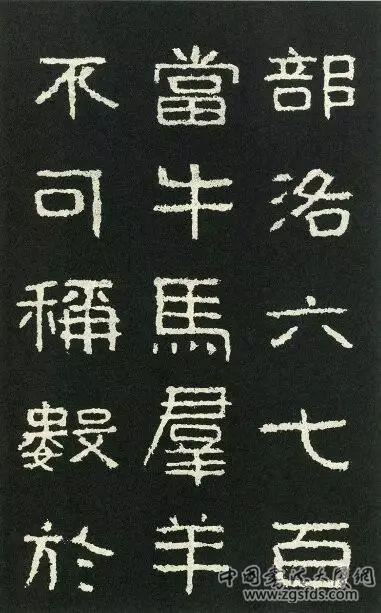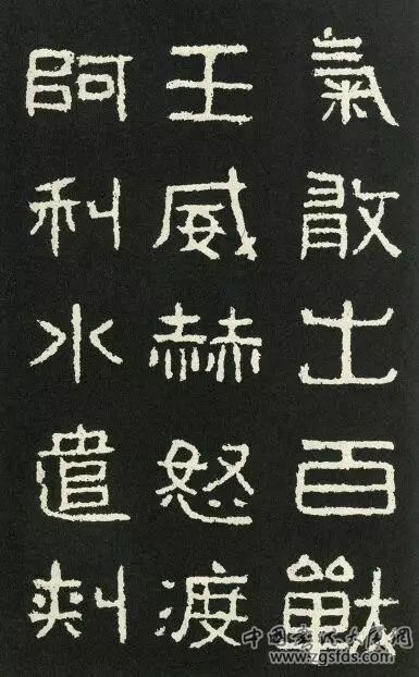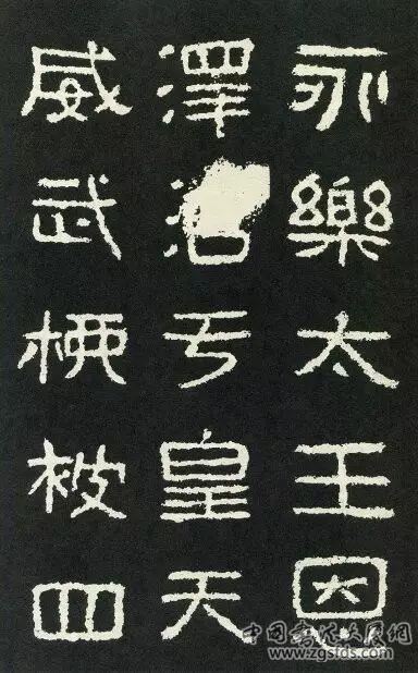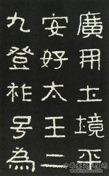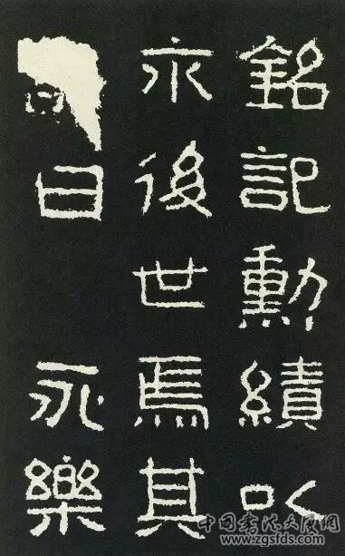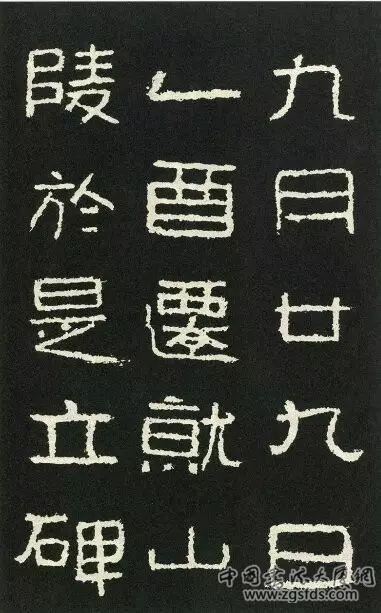 碑文为汉字 , 大小在 9-10 厘米左右 , 为方严厚重的隶书 , 也保留部分篆书和楷书,形成一种方方正正的书法风格 , 是我国书法由隶入楷的重要例证之一。