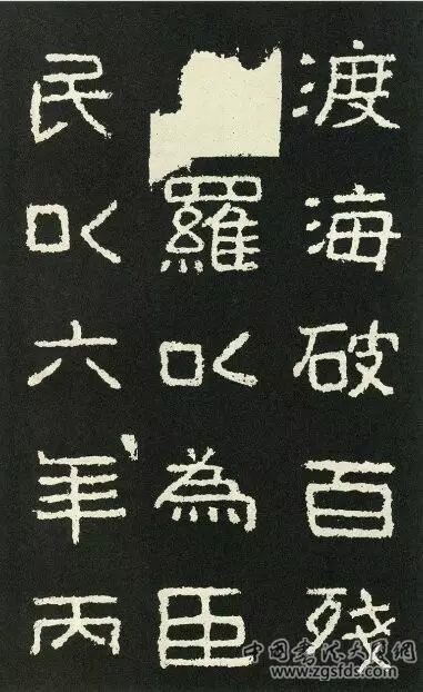 此碑乃高句丽第二十代长寿王为纪念第十九代王谈德而建。碑文叙述了高句丽建国的神话和谈德的战功。此碑书法似隶似楷,有秦诏版遗意。方整纯厚,气静神凝,遒古朴茂,属笔势宽绰高美一宗。与东汉诸碑刻隶书相比,别具风格,故此碑名冠古今。