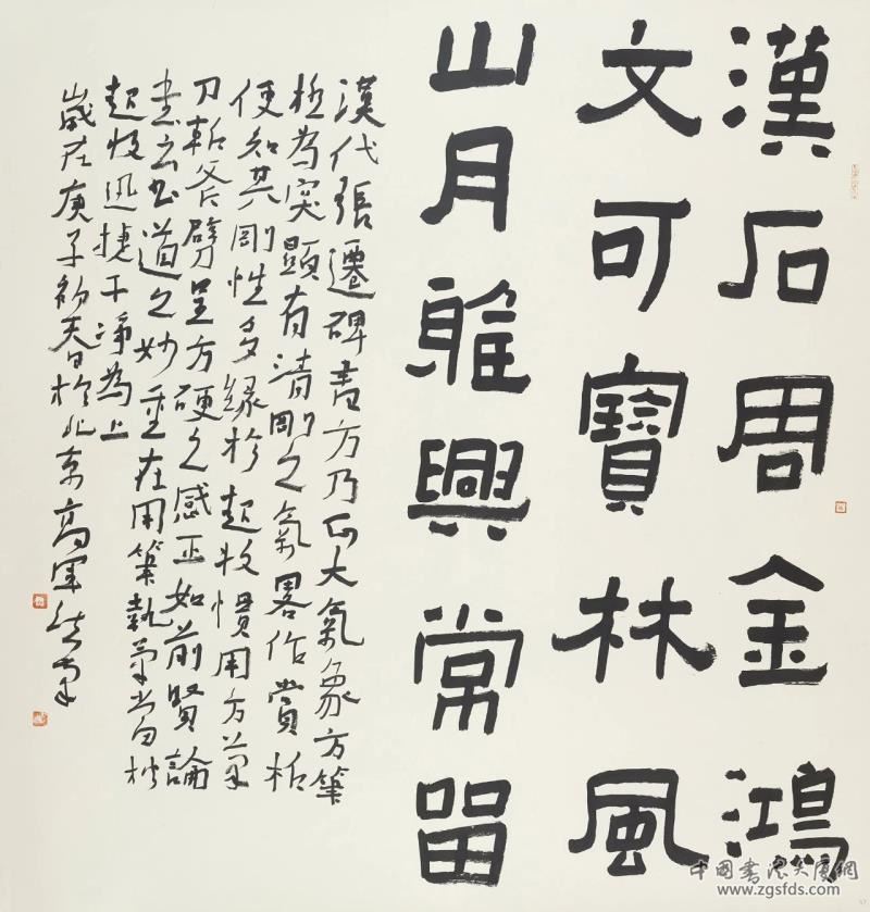 要把以碑刻形式的汉隶进行当代的经典化,已经内蕴两方面的可能走向。强调汉碑之隶,可以超二王帖学,而探出与之不同的隶篆古法,然而,这样做成功之后,容易进入一个误区:以为笔帖之法就是书法的整体之法。强调汉隶之碑,一开始就面对着一种不同于笔帖之法的刀碑之法。知晓刀锋与笔锋有关联,但又洞明就碑帖作为两种不同的书法体类而言,刀碑之法在体类本质上不同于笔帖之法,就会形成另一种向上攀登的研究路线。虽然,笔帖之法和刀碑之法,从最终来讲,会殊途同归。但由于南朝隋唐特别是宋元明笔帖之法形成的巨大传统,以及清代的以碑入帖的助力,强调刀碑之法,更容易突出与传统研究不同的一面,更可能暴露出更多的问题,从而提醒当今学人去思考如何解决这些问题。