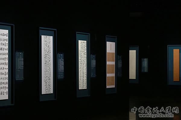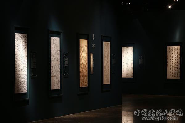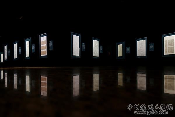 本次策展理念深度关注内容、文体、形式、观众、展厅等元素,装置与设计采用全新的布展方式。展厅环境改造、新型装裱形式、新的装置材料等,在切片灯等视错觉介入下,为烘托主题创造相得益彰的展厅效果。“中国力量”三大篇章文墨相辉,通过时空纵横的立体叙事,让观众直观感知书法展览本体呈现出的审美愉悦与精神震撼。