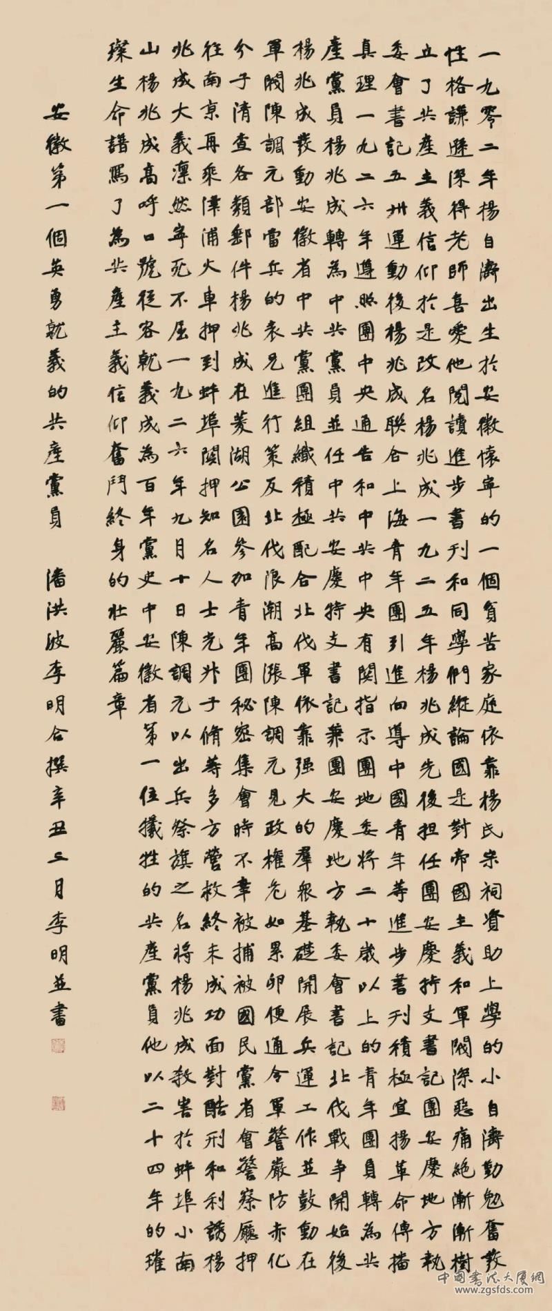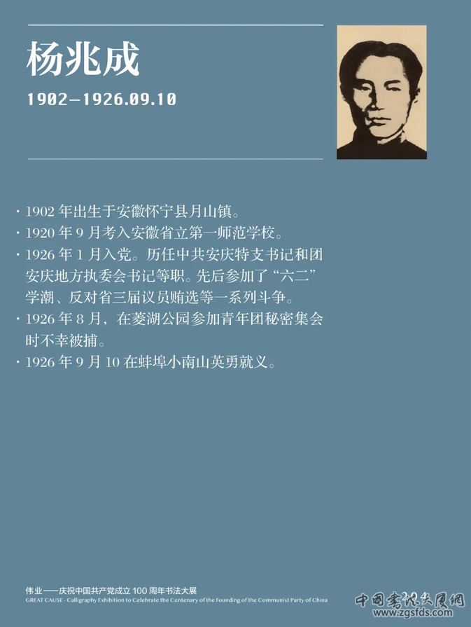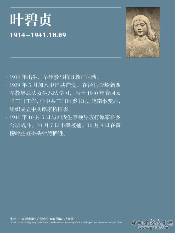 为庆祝中国共产党成立一百周年,中国文学艺术界联合会、中国国家博物馆、中国国家图书馆、中国书法家协会联合举办“伟业:庆祝中国共产党成立100周年书法大展”。韦斯琴、王金泉、王亚洲、杨文浏、李明、季永、杜鹏飞、史文涛、刘跟弟、葛良胜、徐士彬11位安徽书家作品入选本次展览。
