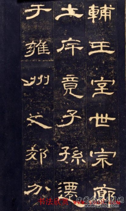 《曹全碑》释文:君讳全,字景完,敦煌效谷人也,其先盖周之胄,武王秉乾之机,翦伐殷商,既定尔勋,福禄攸同,封弟叔振铎于曹国,因氏焉,秦汉之际,曹参夹辅王室,世宗廓土斥竟,子孙迁于雍州之郊,分止右扶风,或在安定,或处武都,或居陇西,或家敦煌,枝分叶布,所在为雄,君高祖父敏,举孝廉,武威长史,巴郡朐忍令,张掖居延都尉,曾祖父述,孝廉,谒者,金城长史,夏阳令,蜀郡西部都尉,祖父凤,孝廉,张掖属国都尉丞,右扶风隃糜侯相,金城西部都尉,北地太守,父琫,少贯名州郡,不幸早世,是以位不副德,君童龀好学,甄极瑟纬,无文不综,贤孝之性,根生於心,收养季祖母,供事继母,先意承志,存亡之敬,礼无遗阙,是以乡人为之谚曰:重亲致欢曹景完,易世载德,不陨其名,及其从攻,清拟夷齐,直慕史鱼,历郡右职,上计掾史,仍辟凉州,常为治中,别驾,纪纲万里,朱紫不谬,出典诸郡,弹枉纠邪,贪暴洗心,同僚服德,远近惮威,建宁二年,举孝廉,除郎中,拜西域戊部司马,时疏勒国王和德,弑父篡位,不供职贡,君兴师征讨,有率脓之仁,分醪之惠,攻城野战,谋若涌泉,威牟诸贲,和德面缚归死,还师振旅,诸国礼遗,且二百万,悉以簿官,迁右夫风槐里令,遭同产弟忧弃官,续遇禁网,潜隐家巷七年,光和六年,复举孝廉,七年三月,除郎中,拜酒泉禄福长,訞贼张角,起兵幽冀,兖豫荆杨,同时并动,而县民郭家等,复造逆乱,燔烧城寺,万民骚扰,人褱不安,三郡告急,羽檄仍至,于时圣主谘诹,群僚咸曰:君哉,转拜郃阳令,收合余烬,芟夷残,绝其本根,遂访故老商量,俊艾王敞、王毕等,恤民之要,存慰高年,抚育鳏寡,以家钱籴米粟,赐癃盲,大女桃婓等,合七首药神明膏,亲至离亭,部吏王宰、程横等,赋与有疾者,咸蒙瘳悛,惠政之流,甚於置邮,百姓襁负,反者如云,辑治廧屋,市肆列陈,风雨时节,岁获丰年,农夫织妇,百工戴恩,县前以河平元年,遭白茅谷水灾害,退于戊亥闲,兴造城郭,是后旧姓及修身之士,官位不登,君乃闵缙绅之徒不济,开南寺门,承望华岳,乡明而治,庶使学者李儒、栾规、程寅等,各获人爵之报,廓广听事官舍,廷曹郎合,升降揖让朝觐之阶,费不出民,役不干时,门下掾王敞,录事掾王毕,主簿王历,户曹掾秦尚,功曹史王颛等,嘉慕奚斯,考甫之美,乃共刊石纪功,其辞曰:懿明后,德义章,贡王廷,征鬼方,威布烈,安殊荒,还师旅,临槐里,感孔怀,赴丧纪,嗟逆贼,燔城市,特受命,理残圯,芟不臣,宁黔首,缮官寺,开南门,阙嵯峨,望华山,乡明治,惠沾渥,吏乐政,民给足,君高升,极鼎足中平二年十月丙辰造。