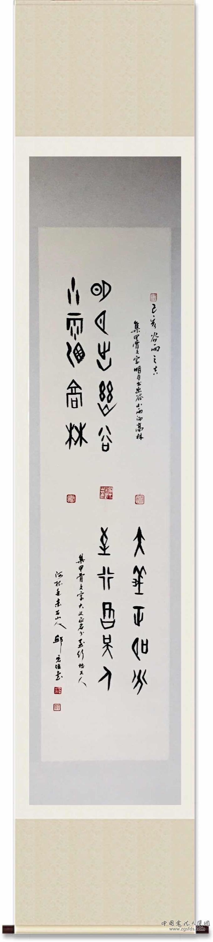 33、2019年12月16日,甲骨文作品入选并永久收藏于日本,参加在日本东京举办的"天上大风"东京国际甲骨文书道展。