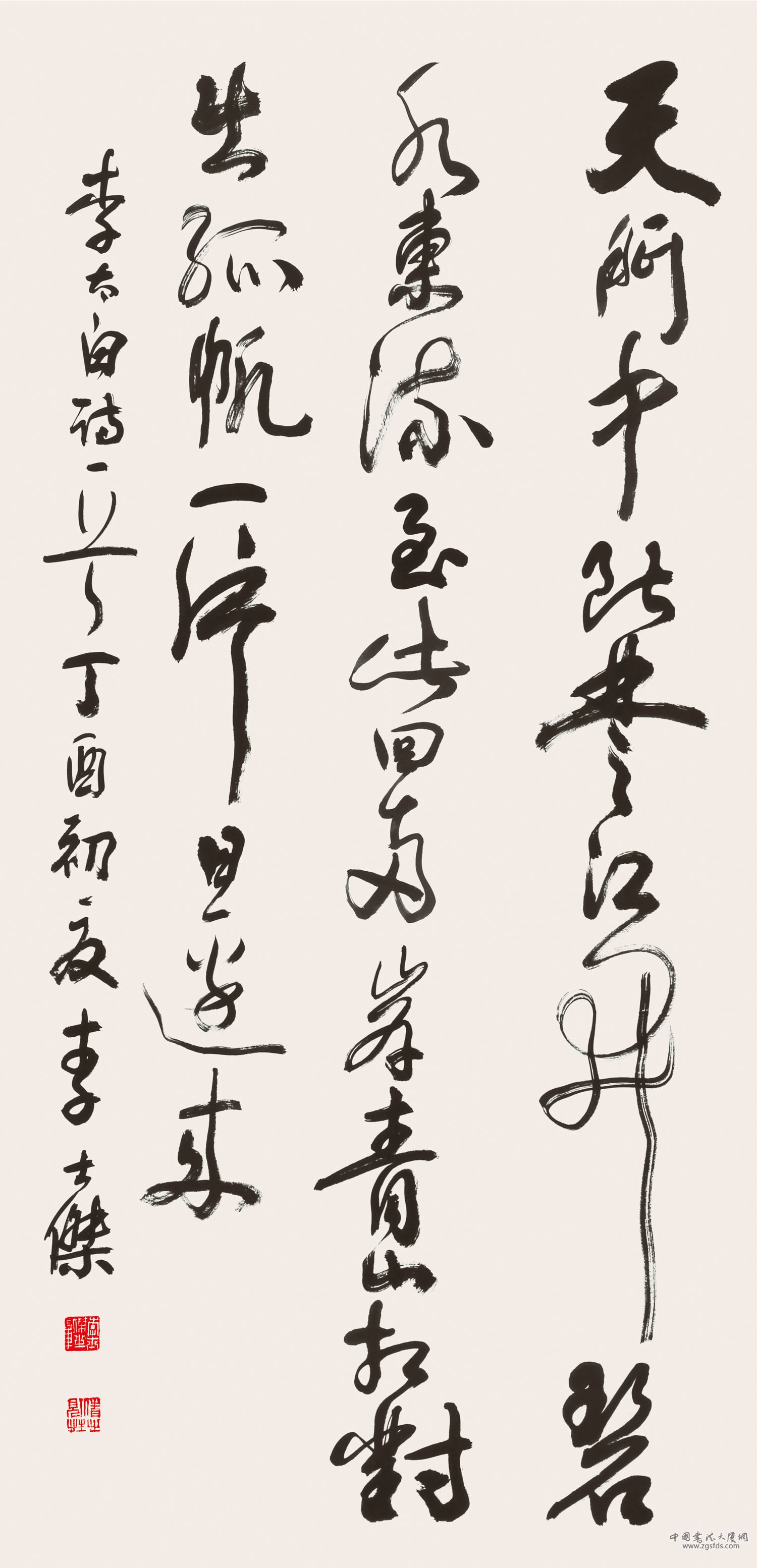 书法风格古拙沉雄,舒展流畅,作品以势取胜,字形跌宕,线条凝重,气畅神足,受到了国内诸多名家的赞赏和肯定。